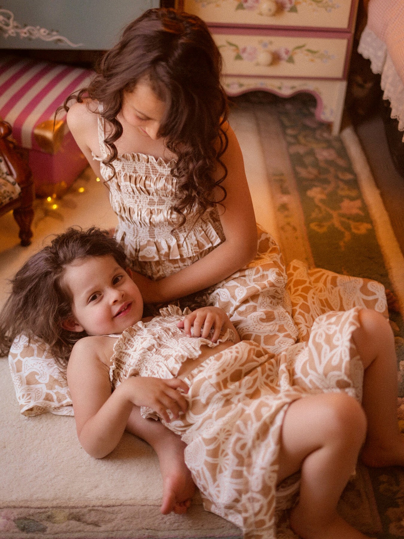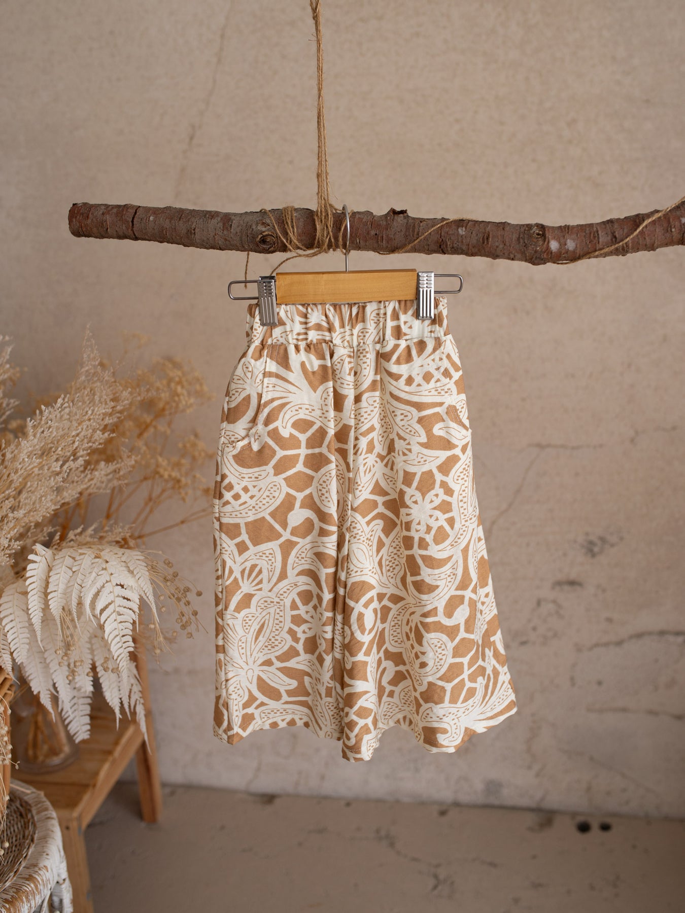 Soft boho print: Sand & ivory tones that pair beautifully with Lace Story Halter Top.