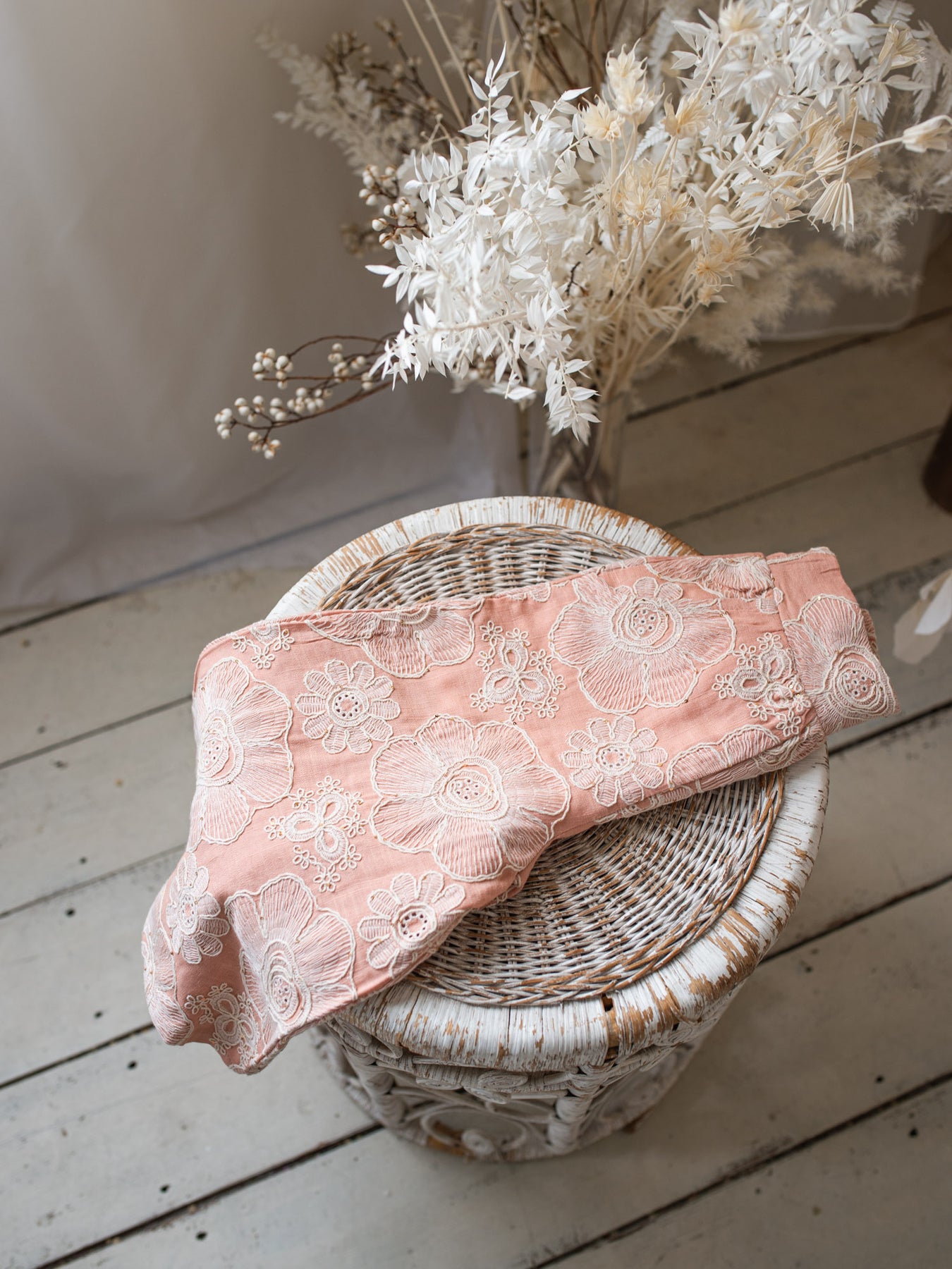Full Embroidered Fabric: Custom-designed floral lace embroidery layered over soft cotton.