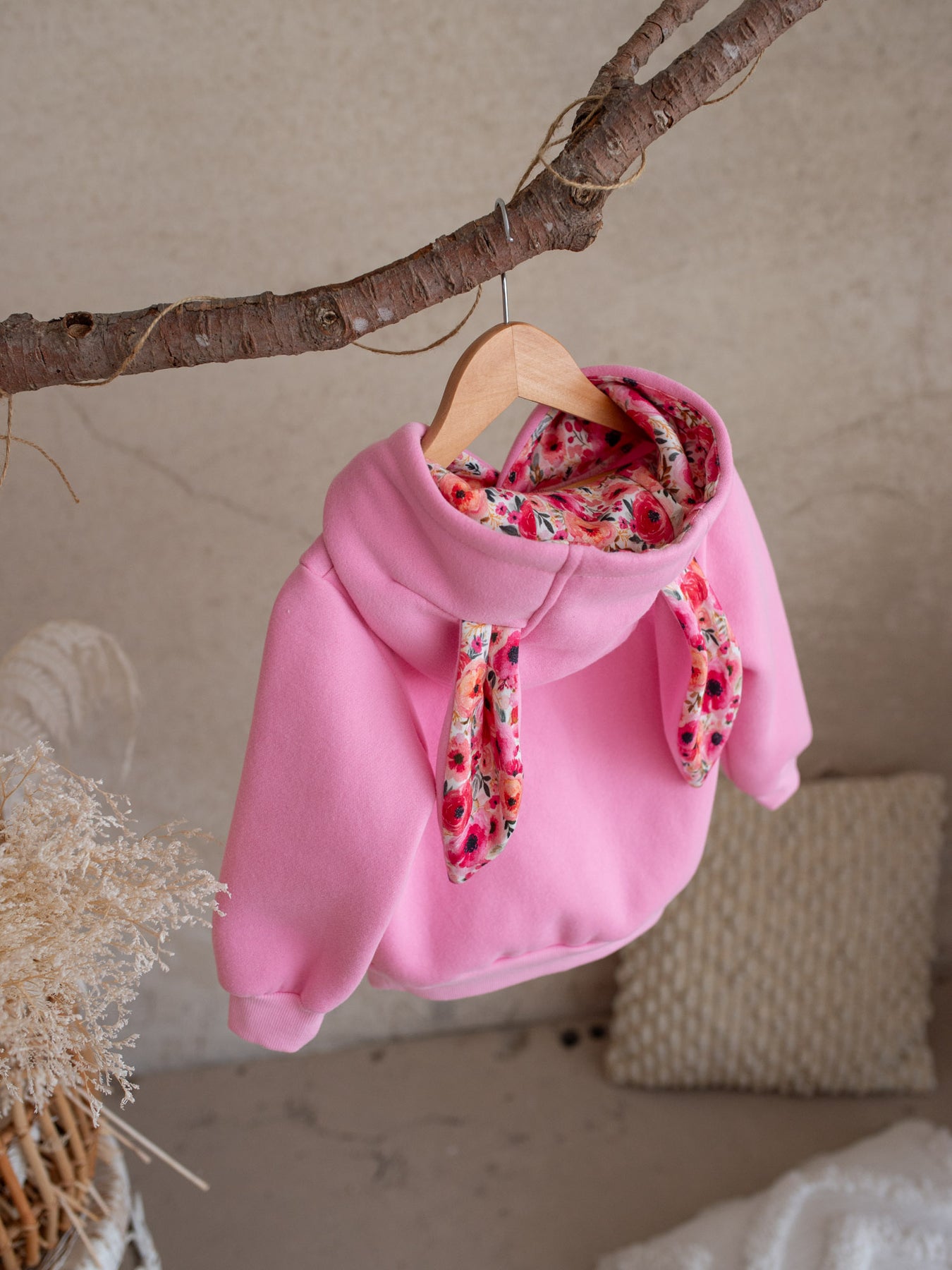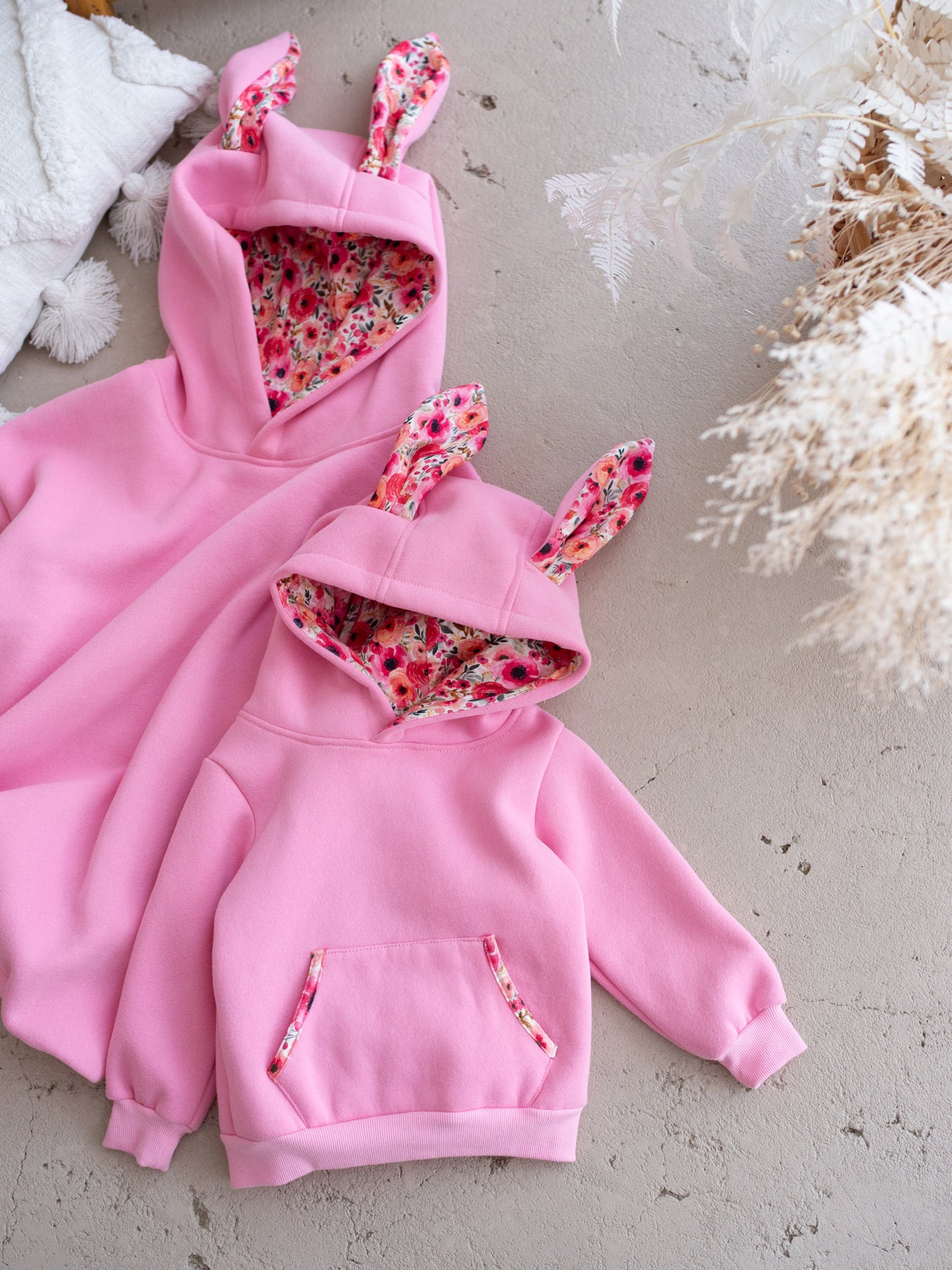 Hop into cozy cuteness with our Little Hopper Hoodie—a must-have for your little one’s everyday wardrobe. This adorable baby bunny hoodie features oversized ears on the hood, a soft brushed interior for ultimate warmth, and charming floral lining for a sweet, stylish touch. Made from premium cotton, it’s perfect as a baby girl hoodie or toddler hoodie for chilly days at the park or snuggly moments at home. The pink hoodie with bunny ears is irresistibly cute and incredibly comfy, making it the ideal choice for casual outings, Easter outfits, or cozy lounge days.