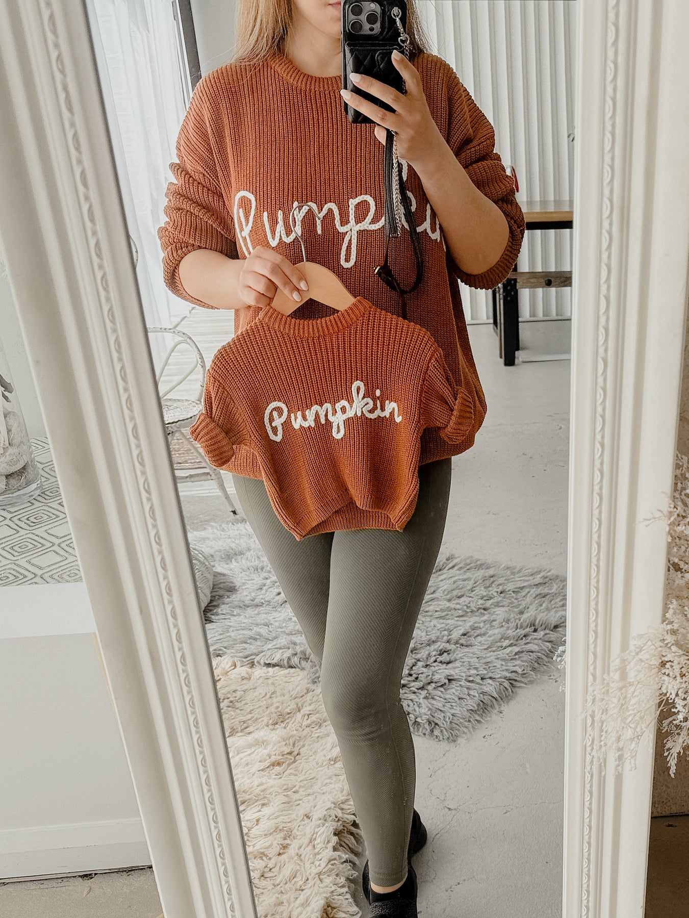Perfect Match – Pairs beautifully with our Pumpkin Bloom mama and mini version as well as kids’ Pumpkin Pie sweaters for the ultimate family look.