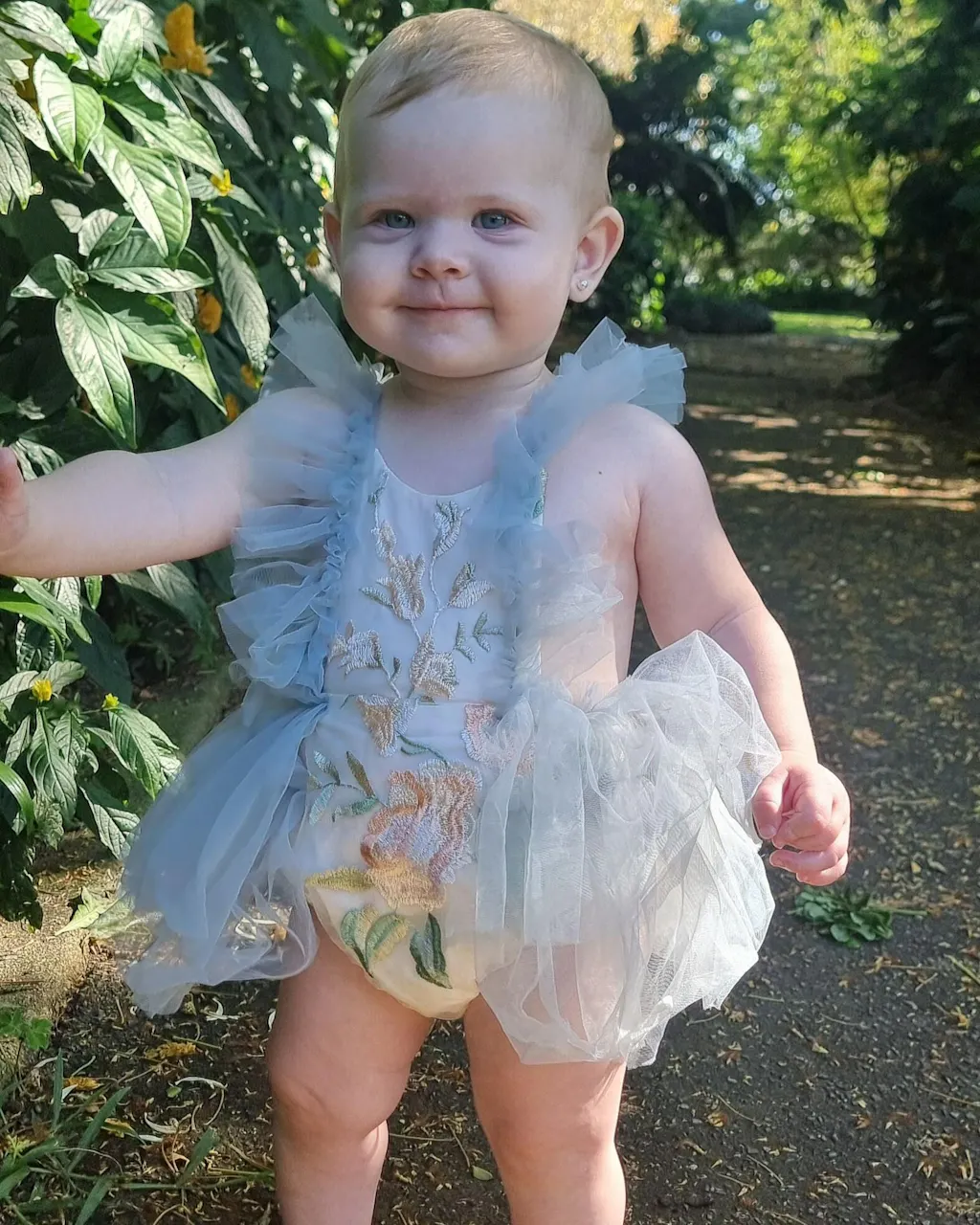 Crafted for little ones who look beyond the realm of pinks and purples, this romper is a celebration of the cool, calming spectrum of the ocean's palette. The exquisite embroidery depicts blooming roses that appear to float on waves, evoking a sense of romance and poetic grace that's as refreshing as a sea breeze.