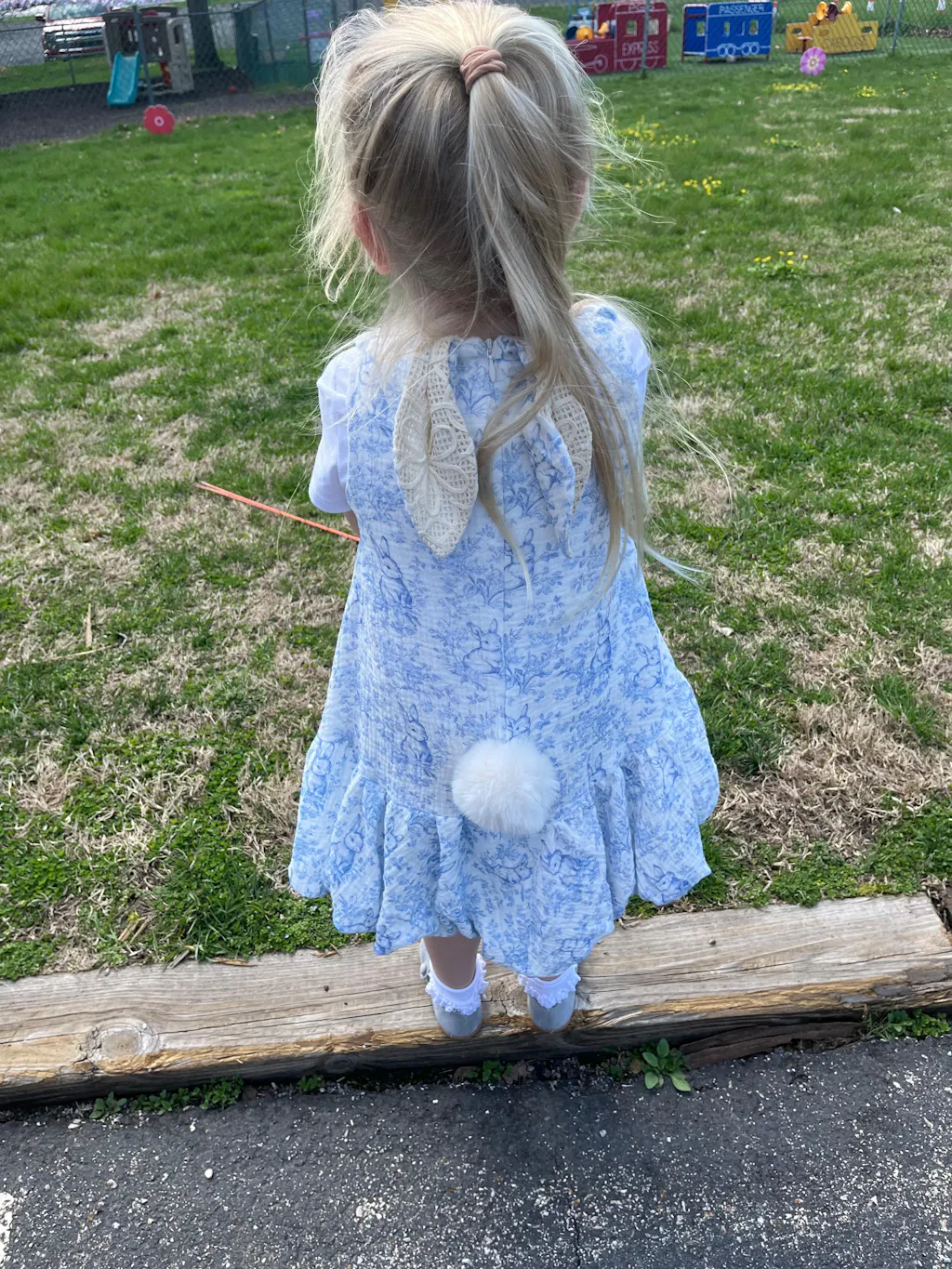 This dress is just beautiful. I bought it for my granddaughter for Easter.The detailing, material was perfect. Beautiful blue pattern the ears & tail made the dress. . I received so many compliments. I would definitely recommend this dress.