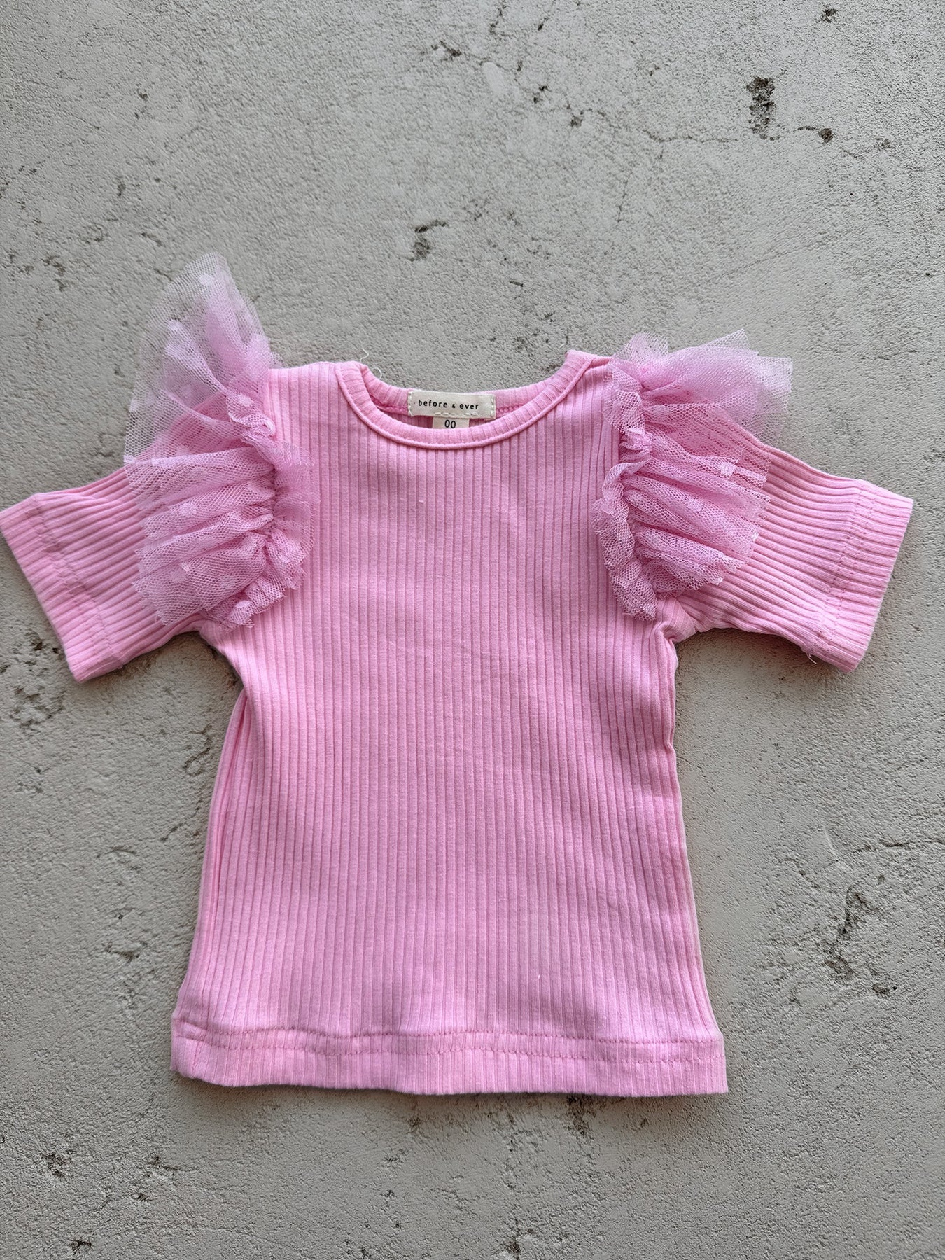 Frill Factor: Features sweet tulle ruffle shoulders for that extra dose of girly charm.